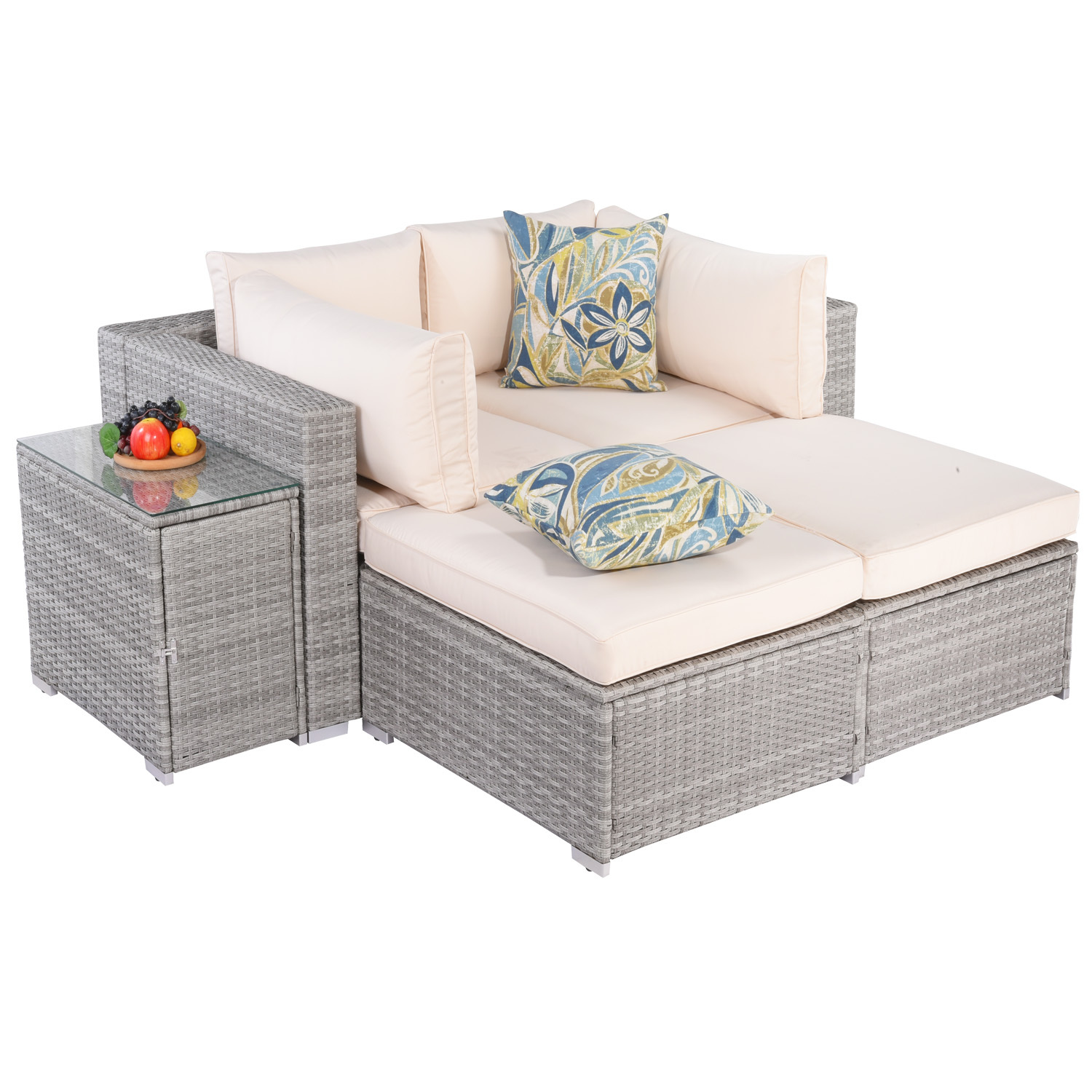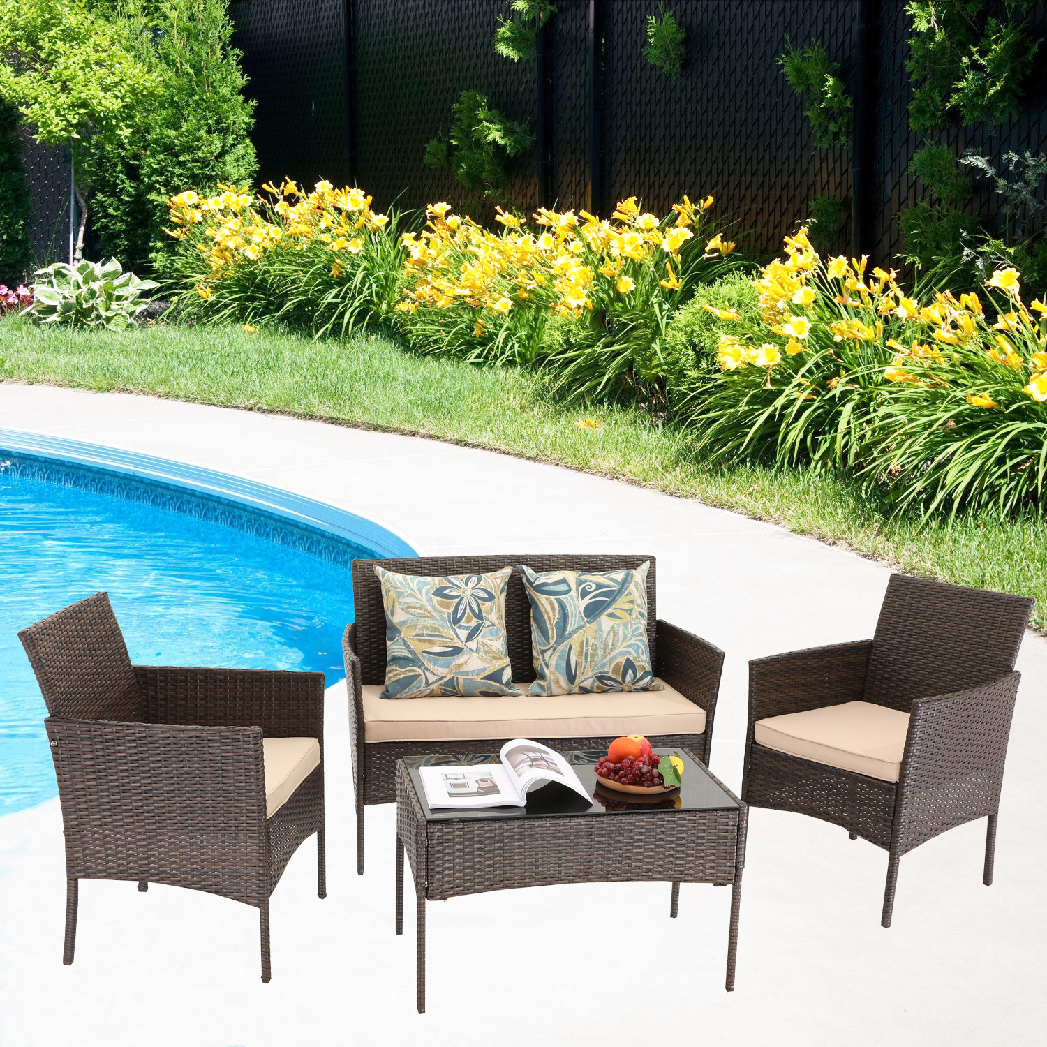 Htth 4 Piece Outdoor Patio Furniture Sets Wicker Sofa With Cushions And Coffee Table Garden Lawn Pool Backyard Outdoor Sofa Sets