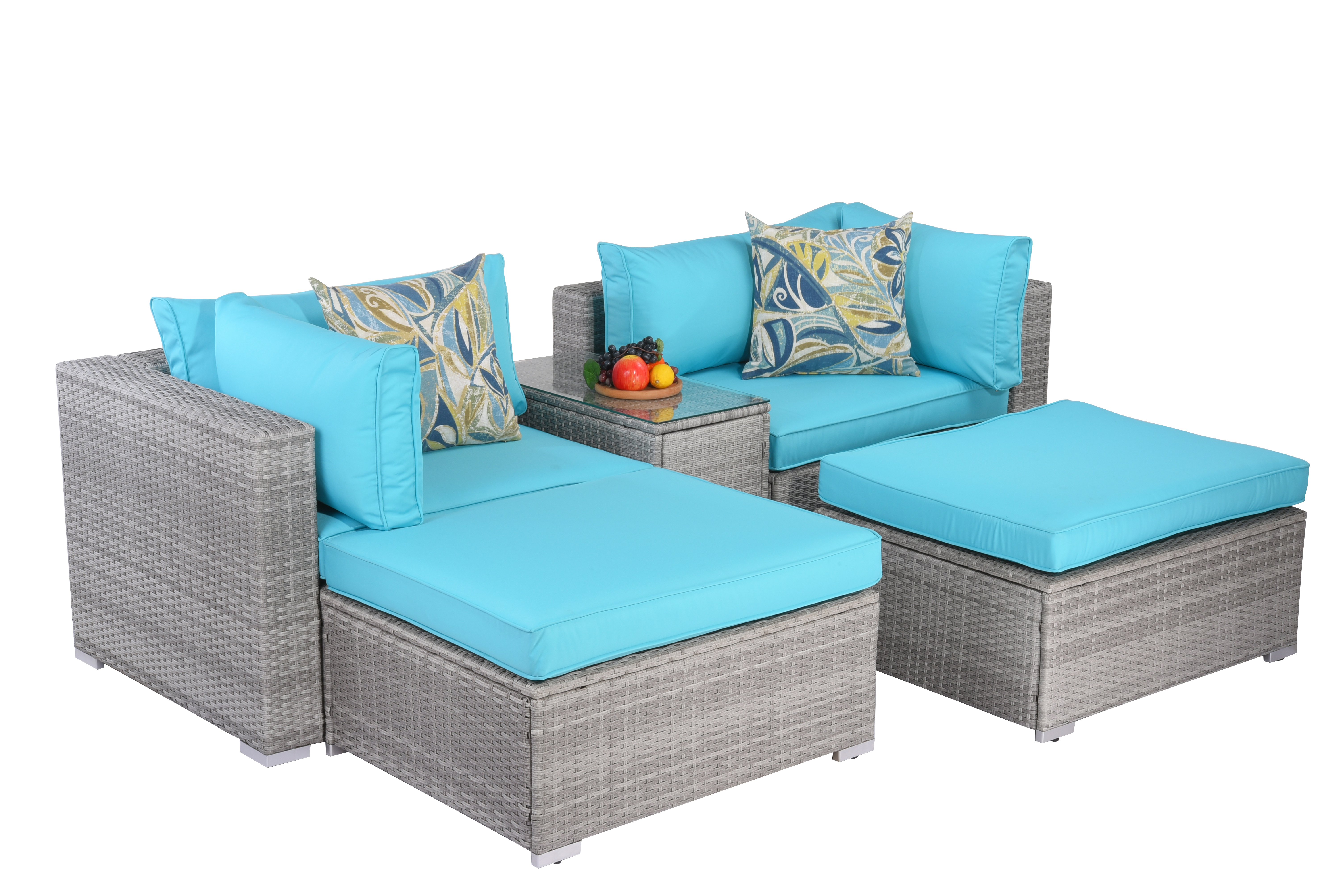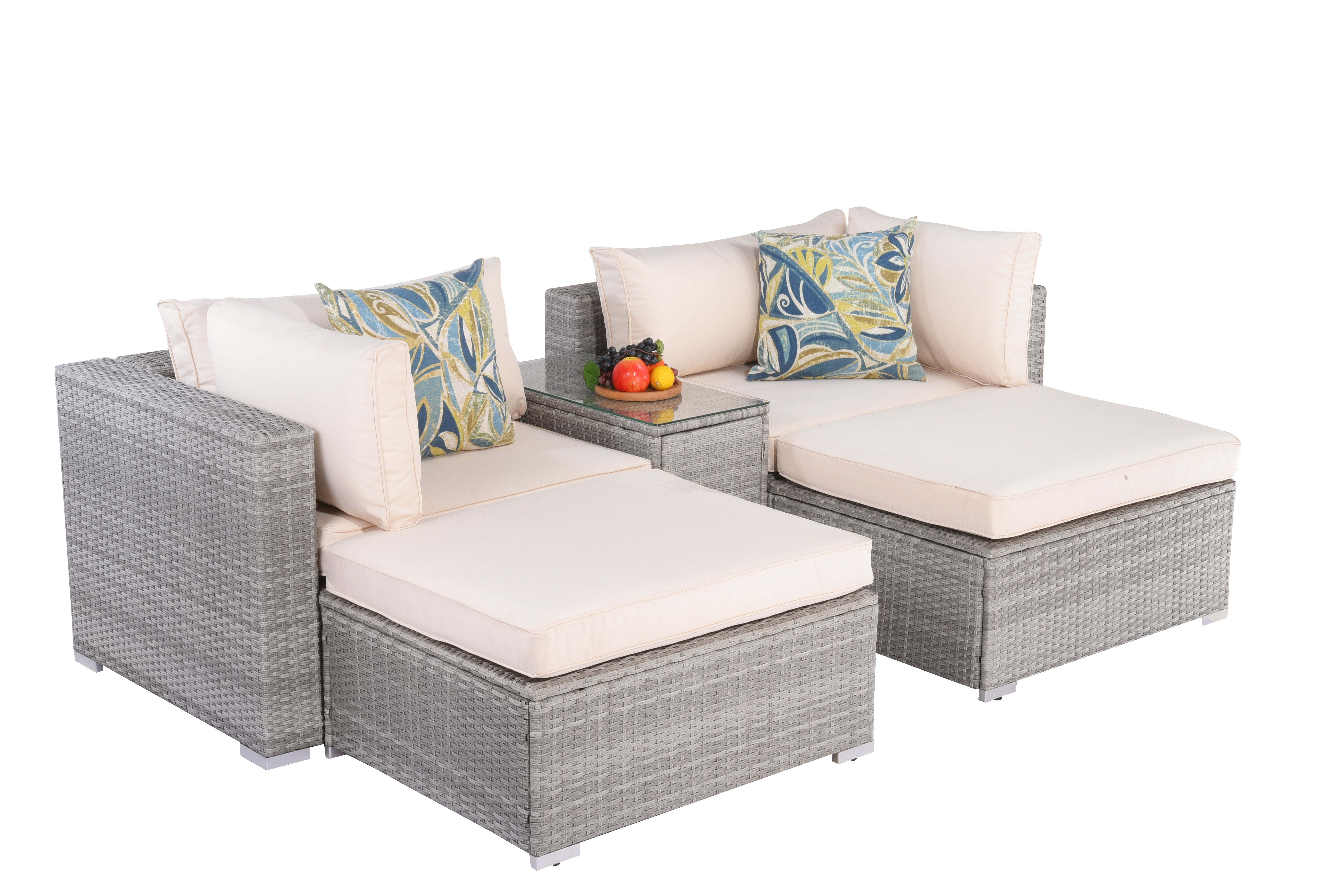Htth Outdoor Patio Conversation Furniture Set 5 Pieces Outdoor Furniture Set All Weather Wicker Sectional Sofa Couch With Ottoman